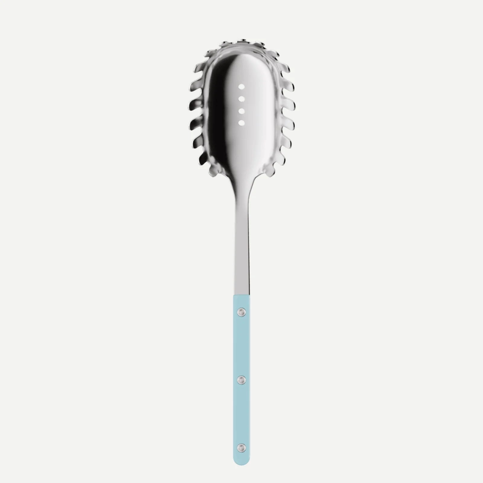 The Sabre Paris Bistro Spaghetti Spoon is a part of the Bistro collection, inspired by the places in life that we love: restaurants, terraces, cafés. When designing this cutlery, Sabre Paris wanted to faithfully capture the atmosphere while adding a modern touch: the styling is simple, the rivets are visible, while the colours and materials stand.
