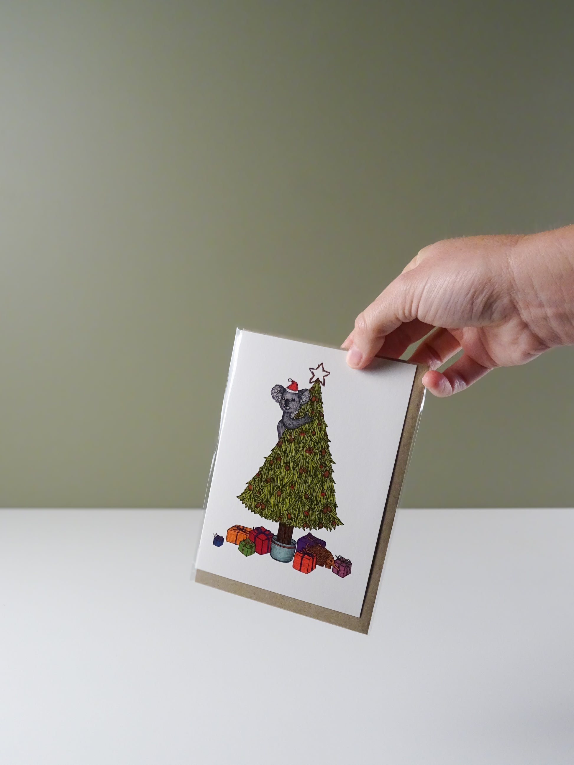 The Koala Christmas Tree greeting card is designed, hand illustrated & printed in house at The Nonsense Maker in Melbourne. Printed using high quality ink on bespoke partially recycled paper. The inside is blank, leaving space for wonderfully thoughtful messages.