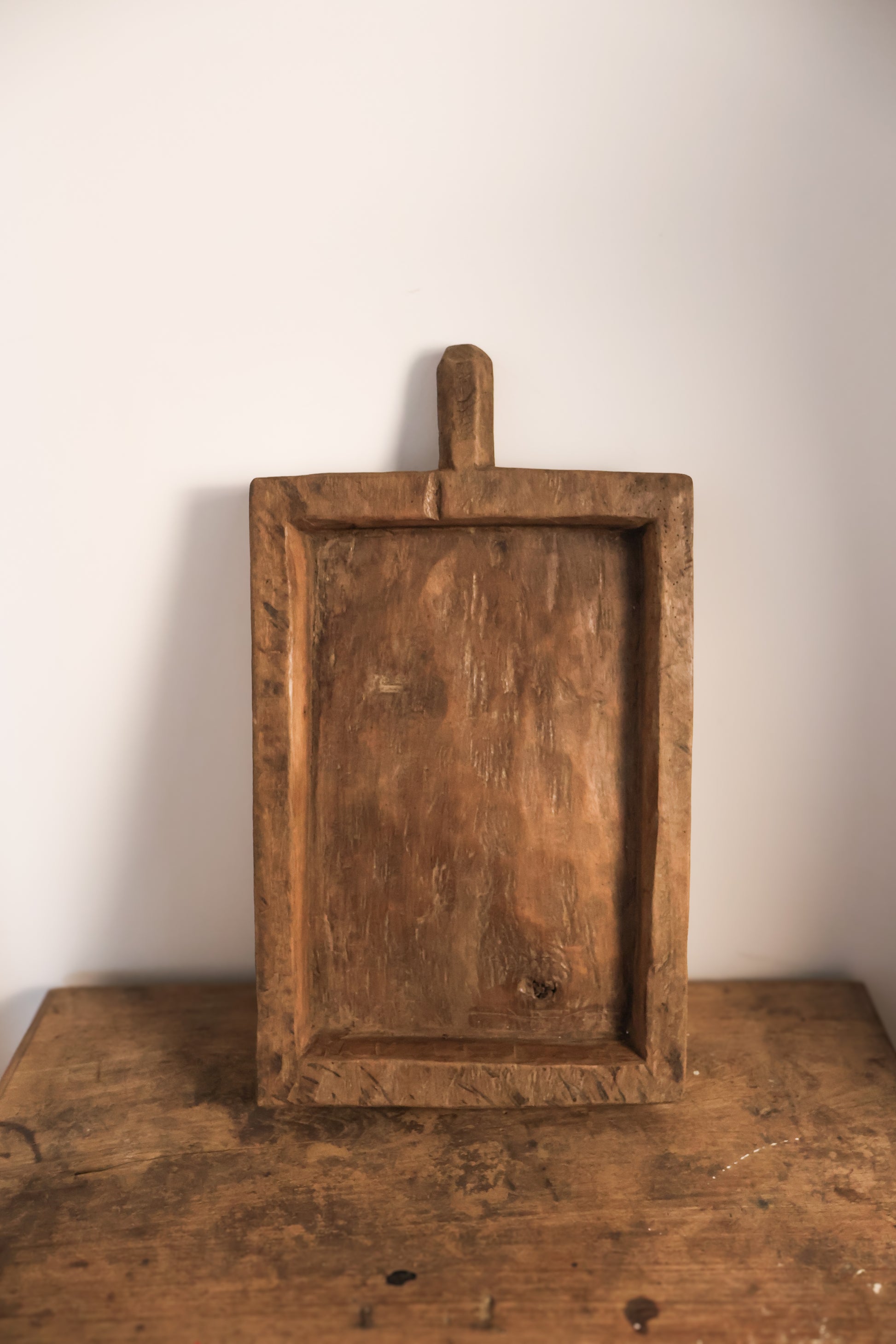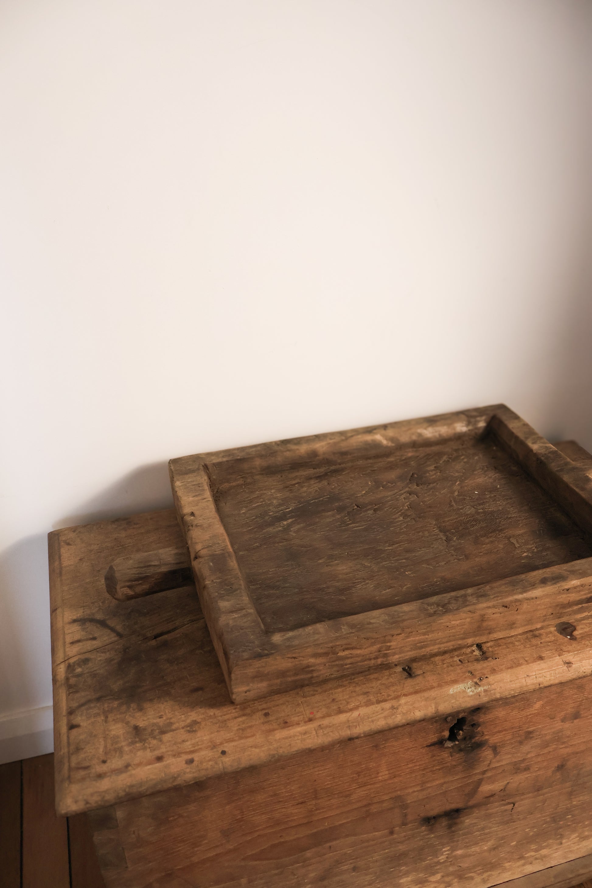 This antique timber tray carries the soft marks of its working past, once used for grinding grains and spices by hand. Today, its generous scale and beautifully aged surface make it the perfect decorative accent for modern living.